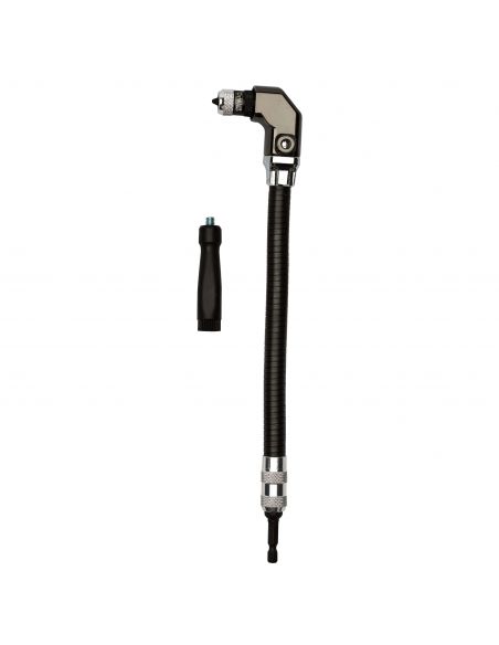 - La tête orientable à 90 degrés ainsi que son arbre totalement flexible permettent de visser avec une visseuse dans les endroits les plus difficiles d'accès.