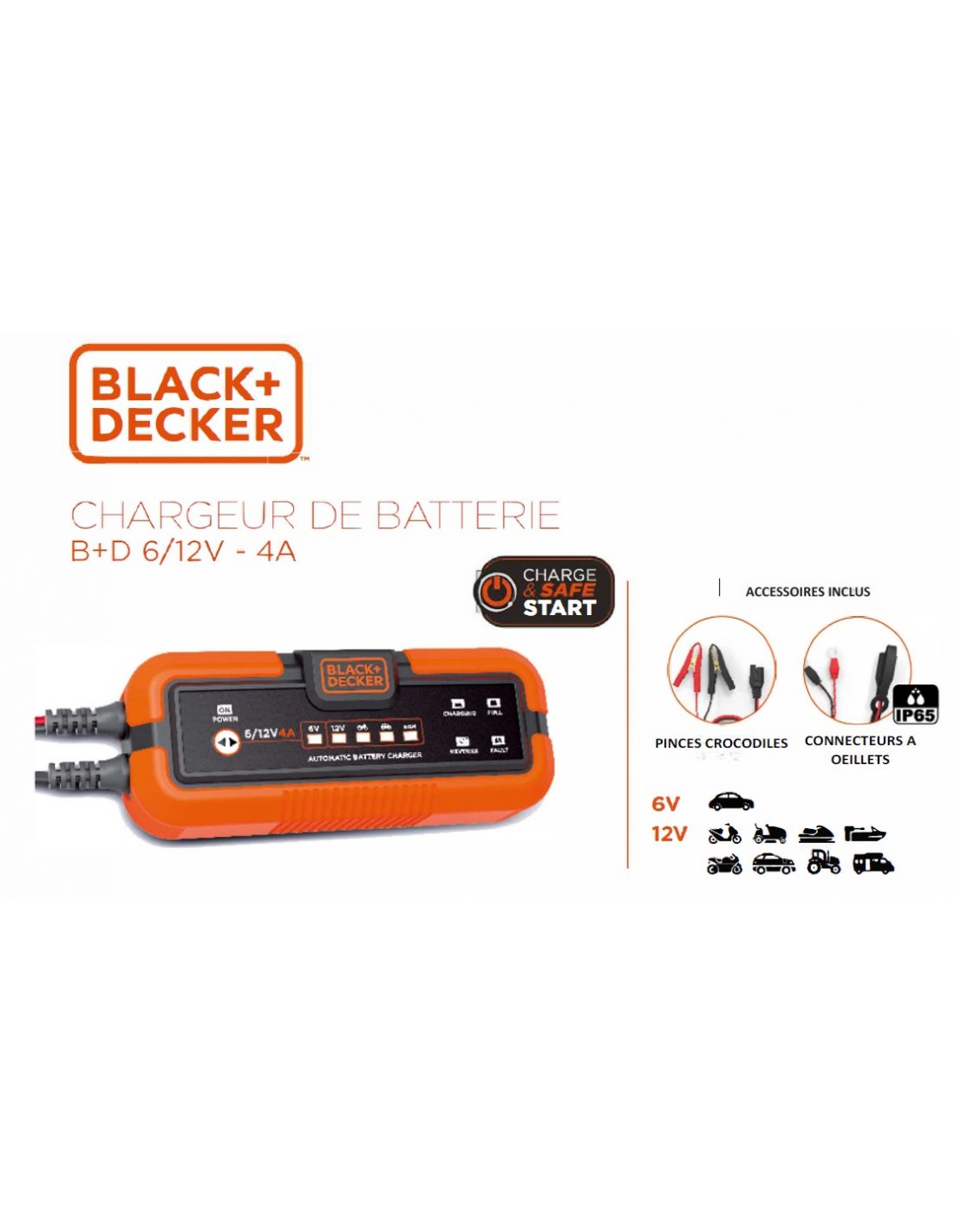 Chargeur batterie Black & Decker 6–12V/4 A BXAE00022 – Booster & Maintien