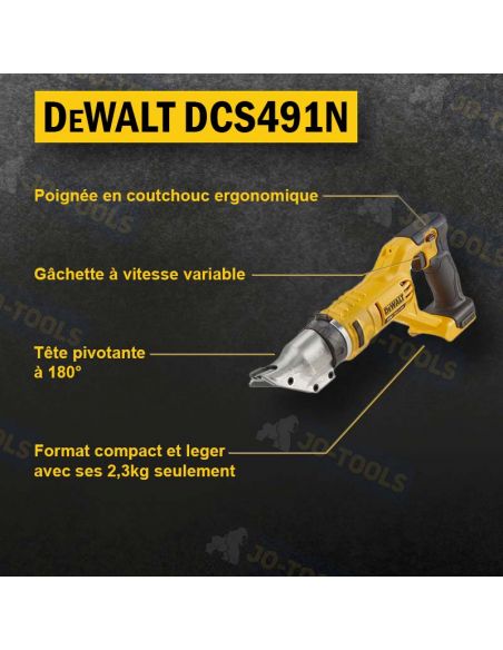 Description de la cisaille à tôle DeWALT DCS491N-XJ :