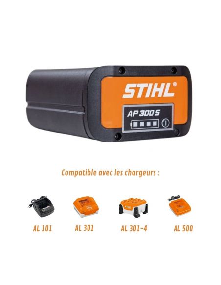 Compatible avec l’ensemble du System AP SITHL (tronçonneuses, souffleurs, taille-haies, débroussailleuses…), la batterie AP300S garantit des performances constantes tout en étant facile à utiliser.