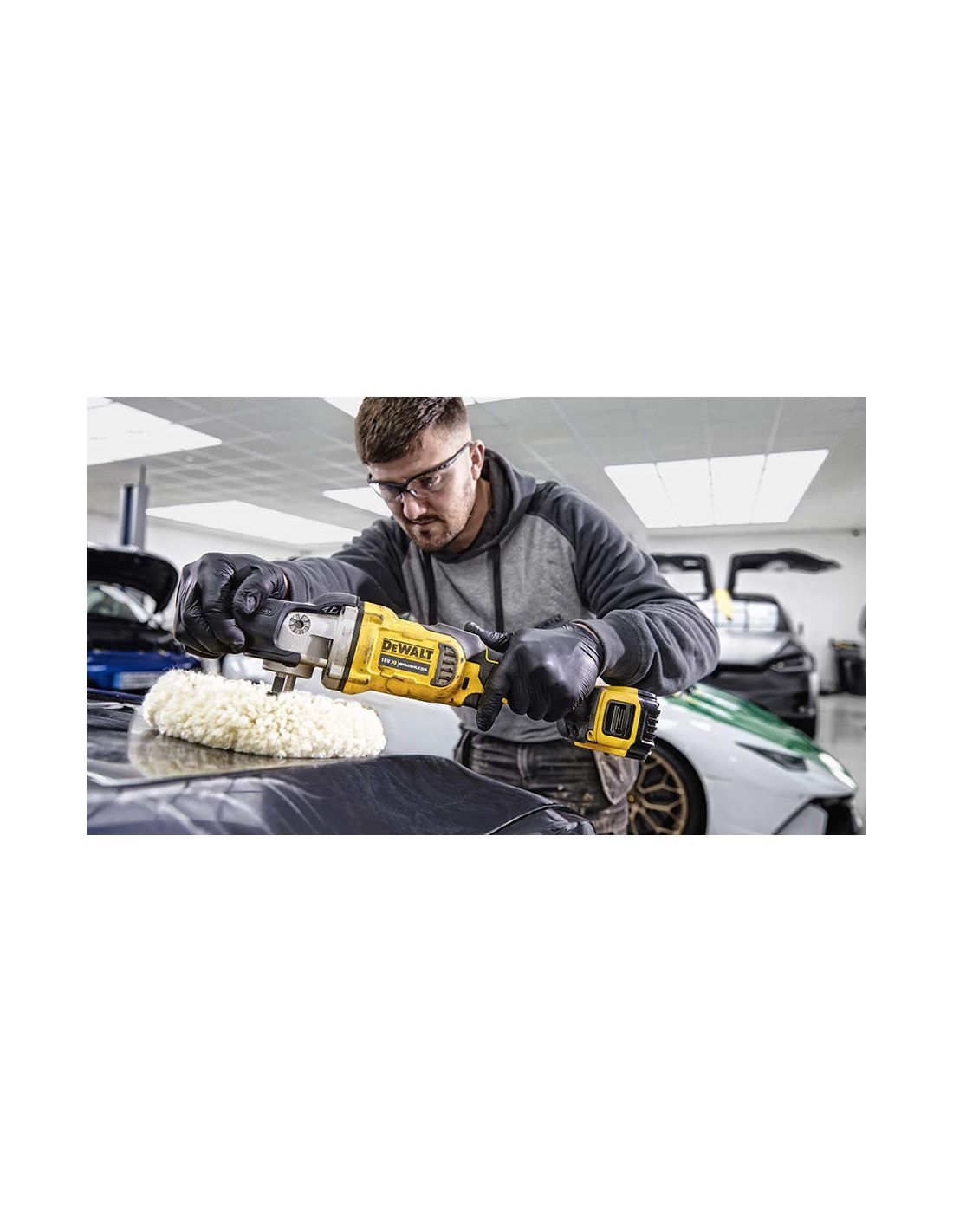 Attention, cette polisseuse professionnelle de carrosserie DeWALT particulièrement puissante est conçue pour les grosses applications et laisse des traces sur son passage. On doit toujours compléter son travail par une polisseuse orbitale pour une finition parfaite.