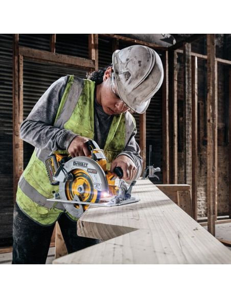 Nouvelle scie circulaire DeWALT 18V qui reconnaît les batteries XR FLEXVOLT 54V conférant à la machine une puissance plus élevée selon l'application.