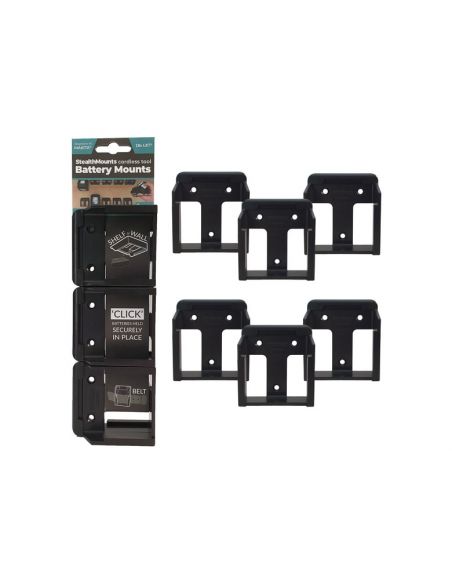 Ce lot de 6 supports StealthMounts® en ABS noir vous permet de maintenir vos batteries à portée de main, tout en libérant de l’espace dans votre atelier, votre garage ou votre camion. Grâce à leur système de clipse robuste, vos batteries restent en place, même en position inclinée.